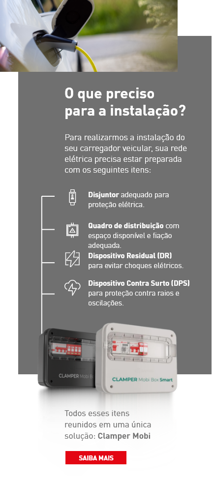 O Clamper Mobi oferece a proteção correta e adequada para sua estação de recarga. Combinada com GreenUp, alcance o mais alto nível de eficiência e segurança para sua família e seu carro.